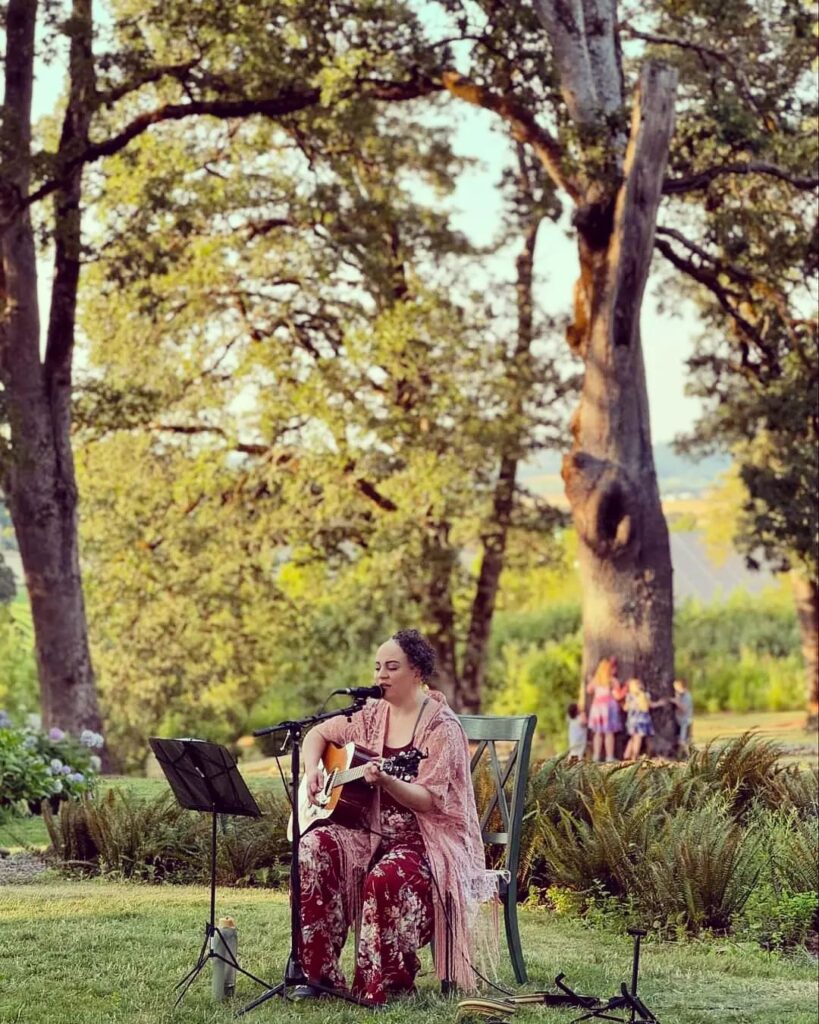 Gina returned to the stage in 2023 after an almost 15-year hiatus from giving public performances. She has since been playing at venues and festivals around the Pacific Northwest region. She made her debut at Seattle’s Northwest Folklife Festival, returned to the beloved mountain lodge where she lived as a teen and wrote several of the songs on her album, played an off-grid outdoor hydroelectric-powered concert at Breitenbush Hot Springs, helped kick off the Washougal Songcraft Festival, and was a featured guest on the national radio program River City Folk with Tom May.